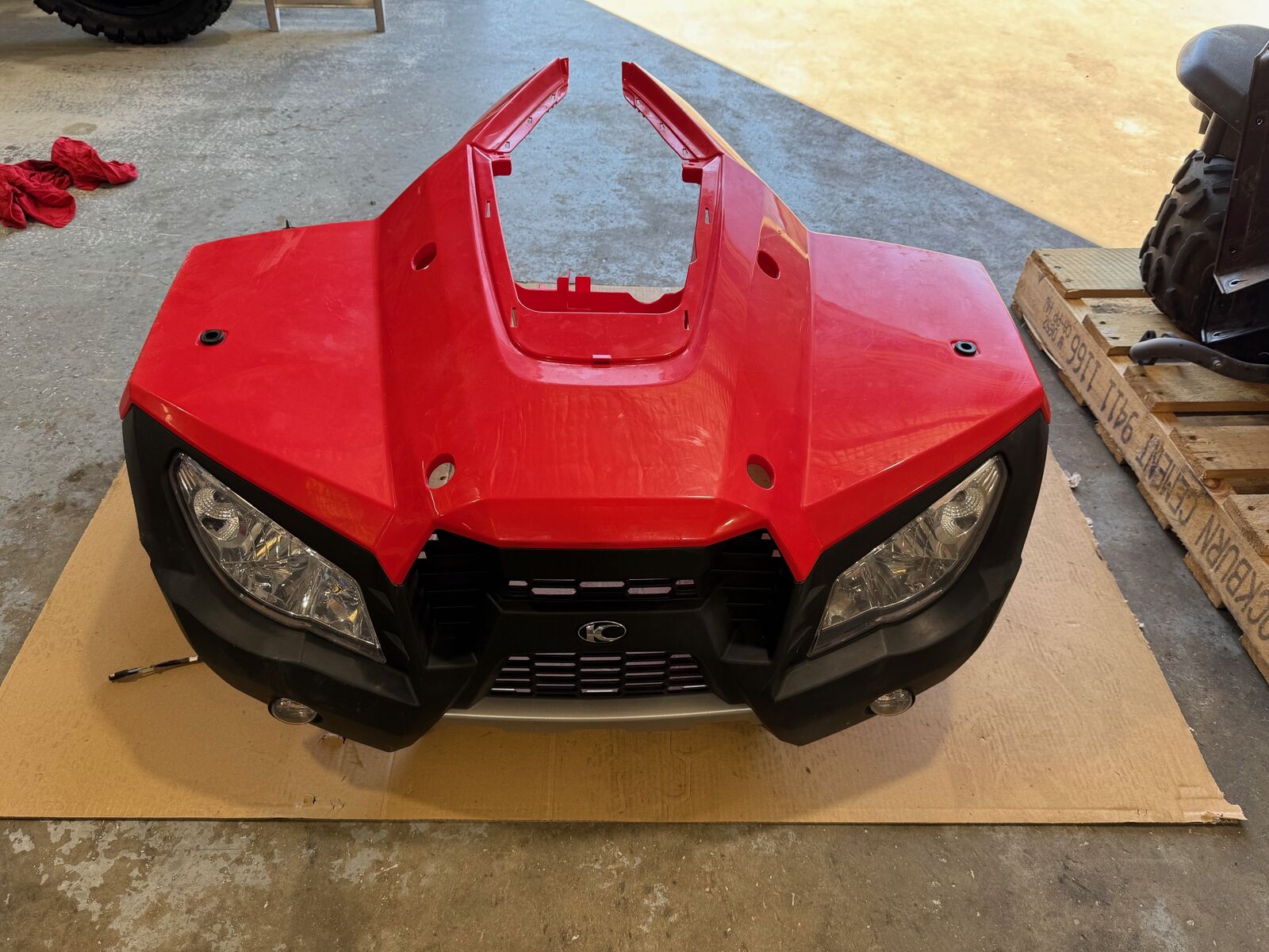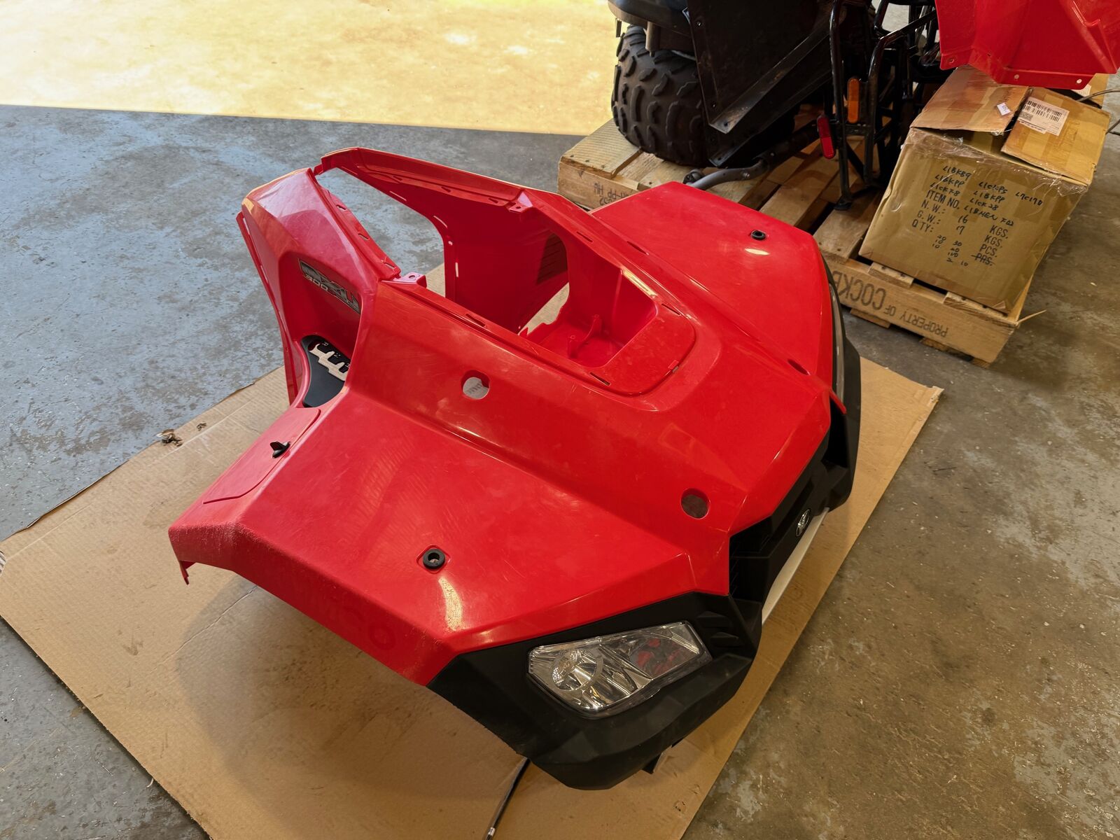 Used OEM parts removed from a KYMCO MXU 300R (300cc ATV). All parts are in good but used condition, showing normal signs of wear and use consistent with a working vehicle. The KYMCO MXU 300R is equipped with a 19hp engine, dual A-arm front suspension, unit-swing rear suspension, electric start, hydraulic disc brakes, and front/rear carry racks.