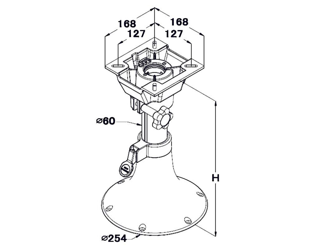 Write A ReviewManually adjustable pedestal with large bell shape base. Made from marine grade corrosion resistant aluminum with a powder coated grey base and fiction lock swiveling seat mount.