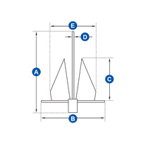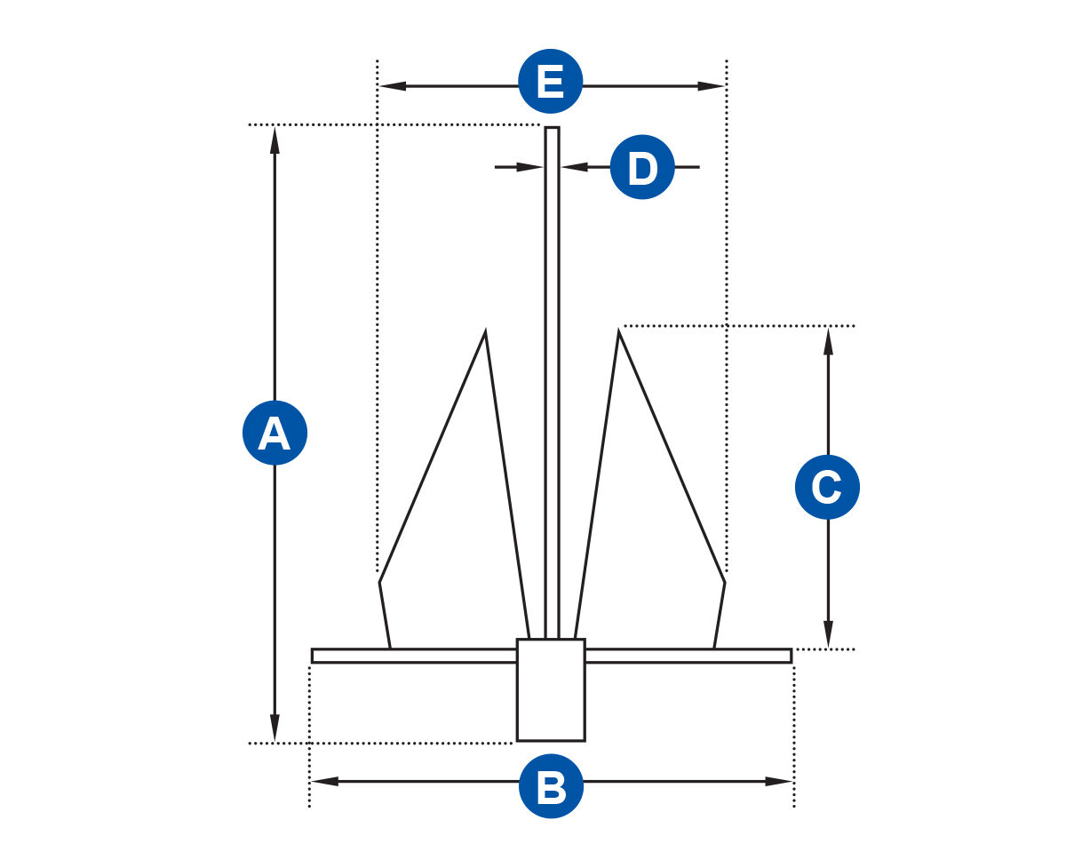 | JPW SKU | Anchor Size | A (mm) | B (mm) | C (mm) | D (mm) | E (mm) | Suggested Boat Size |