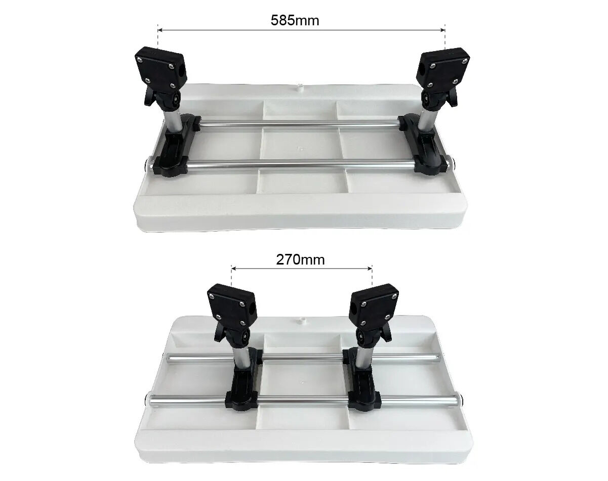 The two rails underneath the tray enable you to slide the rail mount brackets different distances apart, as required. The mounting brackets are also adjustable to balance the angle of the board.