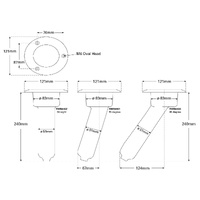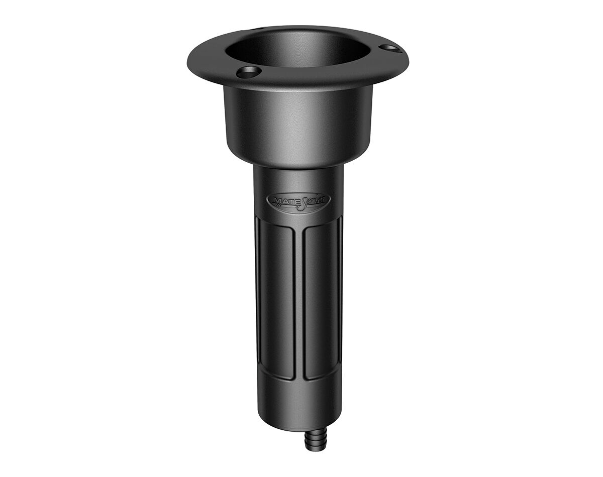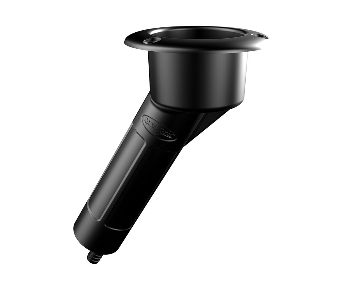 Made from black ABS plastic these rod/cup holders come in 3 versions: straight, 15 degree angle or 30 degree angle. They feature a round head and a NPT drain fitting on the base to avoid water and debris from collecting at the bottom.