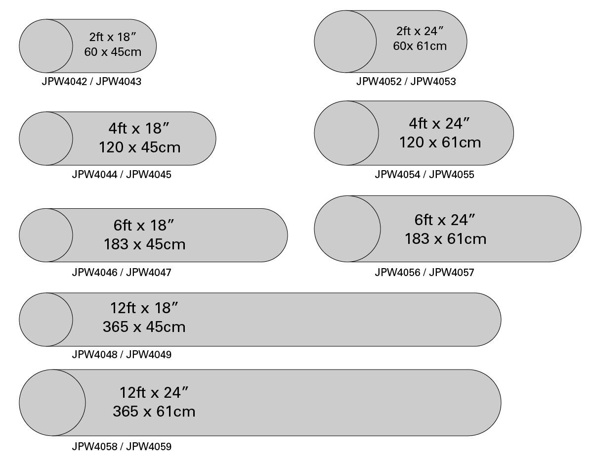 | JPW4058 | JPW4059 | 12ft (365cm) | 24" (61cm) |