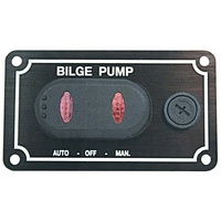 Write A ReviewBlack textured alloy switch panel for use in controlling bilge pumps. Three position illuminated waterproof rocker switch for auto, off and spring return manual setting. Suits both 12 and 24 volt systems.
