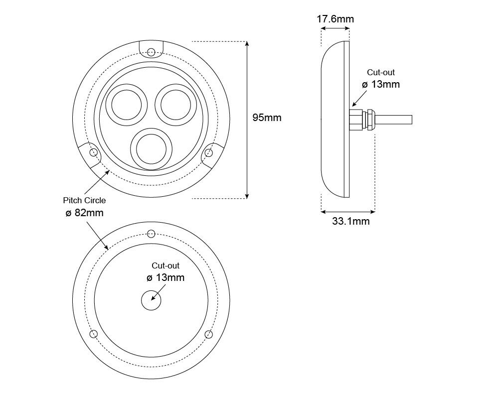 | Hole cut out size: | 15mm (Gland size: 13mm) |
