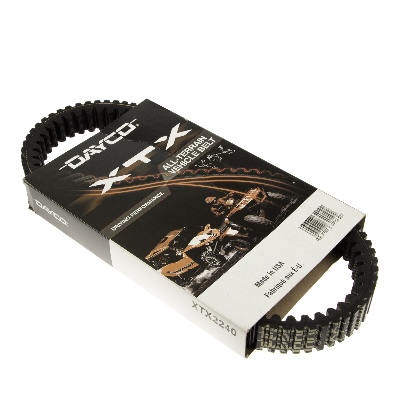 Dayco POWER XTX ATV Belts are constructed with specially formulated, high-temperature polychloroprene with an aramid fibre reinforcement for increased horsepower capacity and more responsive engine braking during deceleration. This belt is proven reliable at well over 12,000 RPMs, for faster, more consistent throttle response and improved durability. The Dayco POWER XTX ATV Belt’s breakthrough design features deeper cogs on top and rounded cogs on the bottom for ultimate flexibility, longer belt life and cooler running temperatures compared to leading competitors.