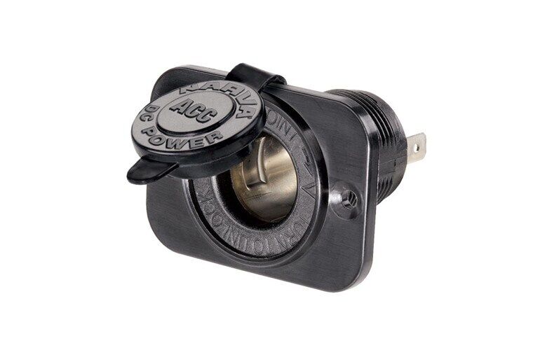 Heavy-Duty accessory socket with dust proof cover. Suitable for Interior or exterior fitting. Rating 20A @ 12V, 10A @ 24V | Mounting 29mm dia .