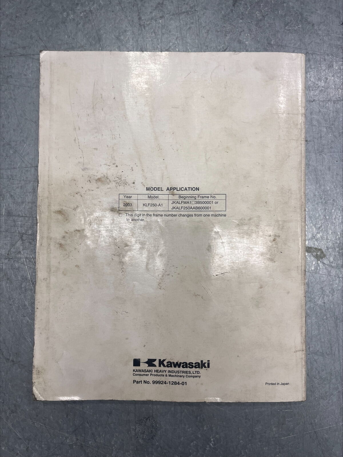Kawasaki 2003 KLF250 / Bayou 250 / Workhorse 250 Service Manual