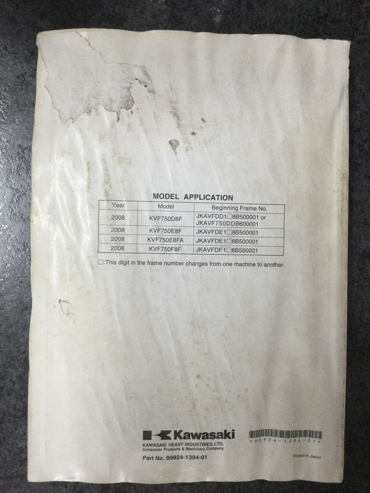 Kawasaki Brute Force 750 4x4i / KVF750 4x4, All Terrain Vehicle Service Manual 2008 #99924-1394-01