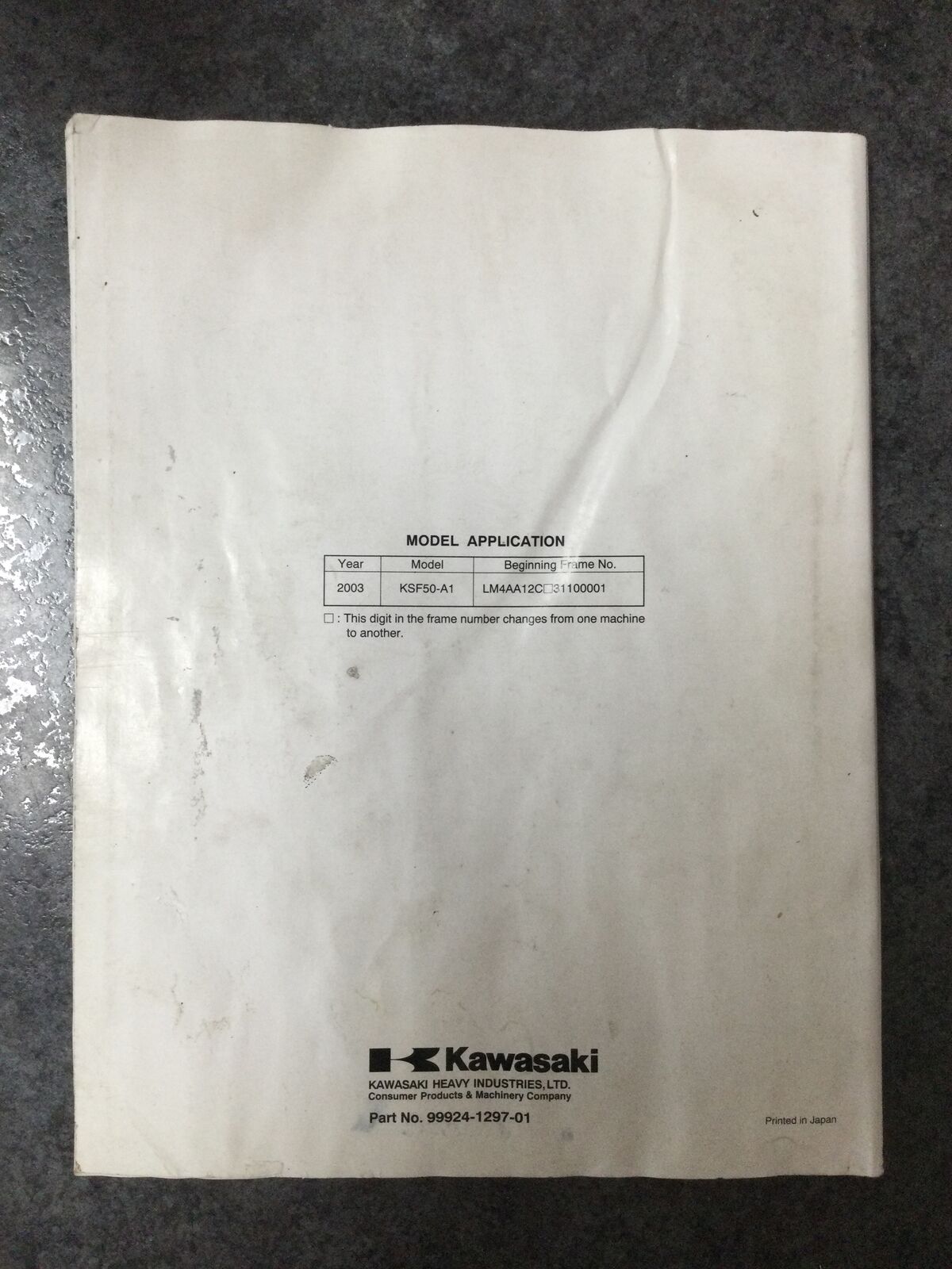 Write A ReviewKawasaki KFX50 All Terrain Vehicle Service Manual 2003 #99924-1297-01