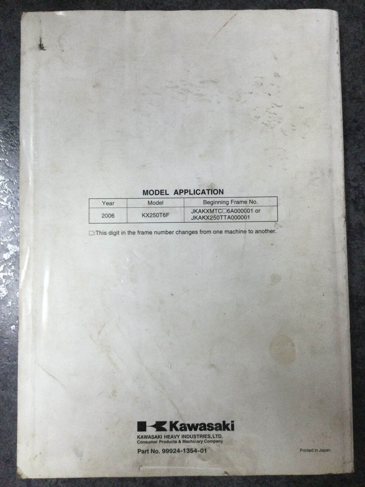 Write A ReviewKawasaki KX250F Motorcycle Service Manual 2006 #99924-1354-01