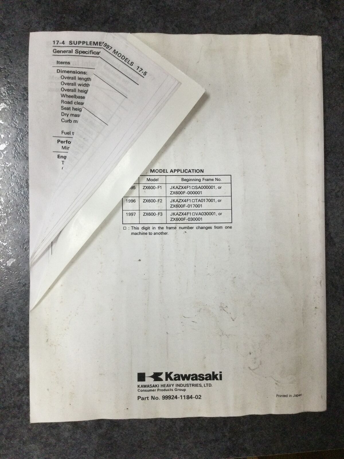 Genuine Kawasaki service manual covering the 1995–1997 Ninja ZX-6R motorcycles. Provides detailed maintenance procedures, technical specifications, troubleshooting guidance, and repair instructions. An essential reference for owners, riders, and mechanics to ensure optimal performance and proper servicing of these motorcycles.