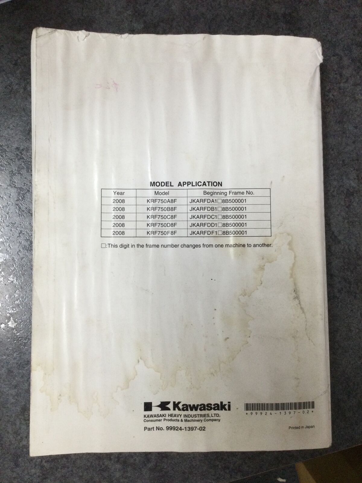 Write A ReviewKawasaki Teryx 750 4x4 / LE / NRA Outdoors Utility Vehicle Service Manual 2008 #99924-1397-02