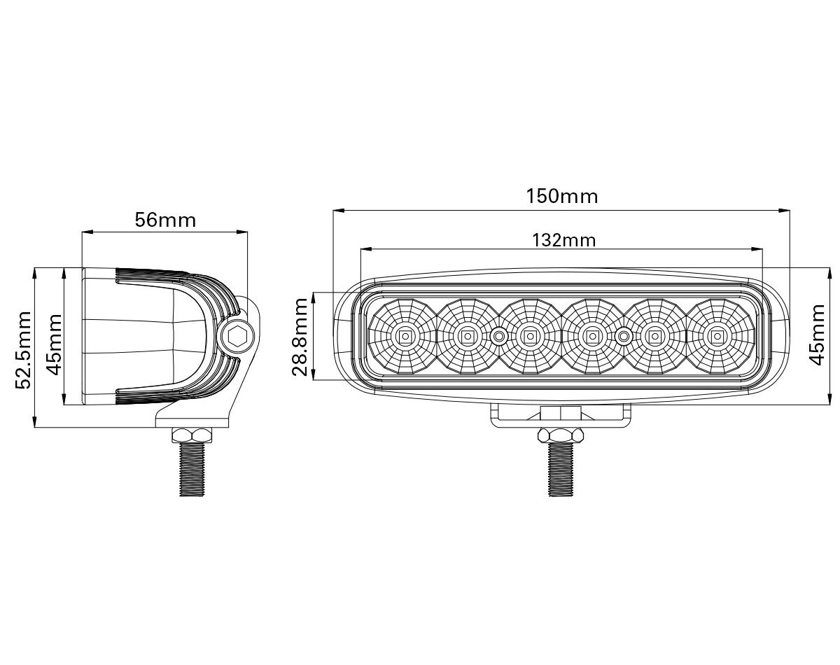 The strong mounting bracket features a large nut to keep the light securely in position, and resistant to vibration and movement.