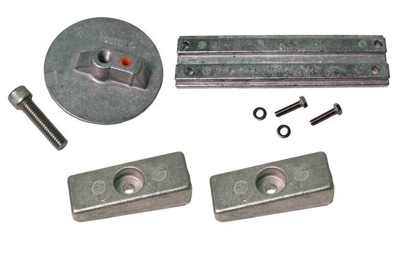 Complete kit of anodes and hardware for Mercury Verado 4 and Optimax outboards.