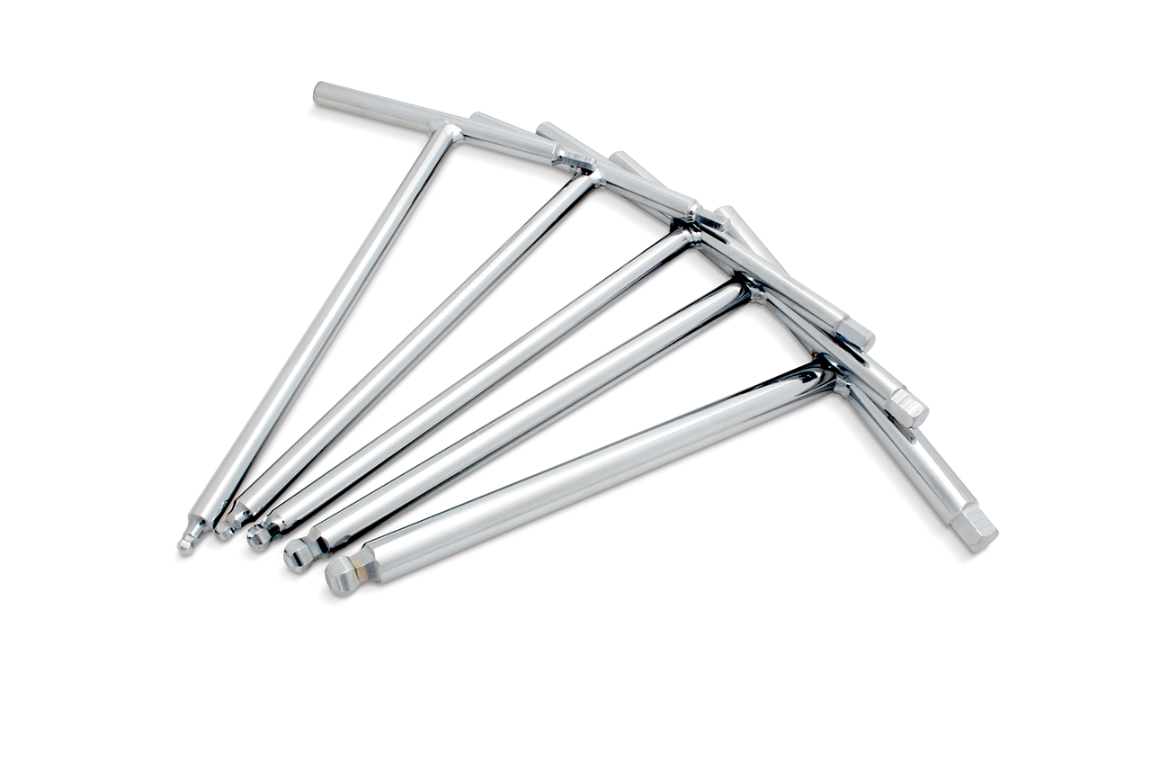 - Use T-Handle hex to tighten/loosen fasteners and ball-end hex on shaft for quick installation/removal of fasteners