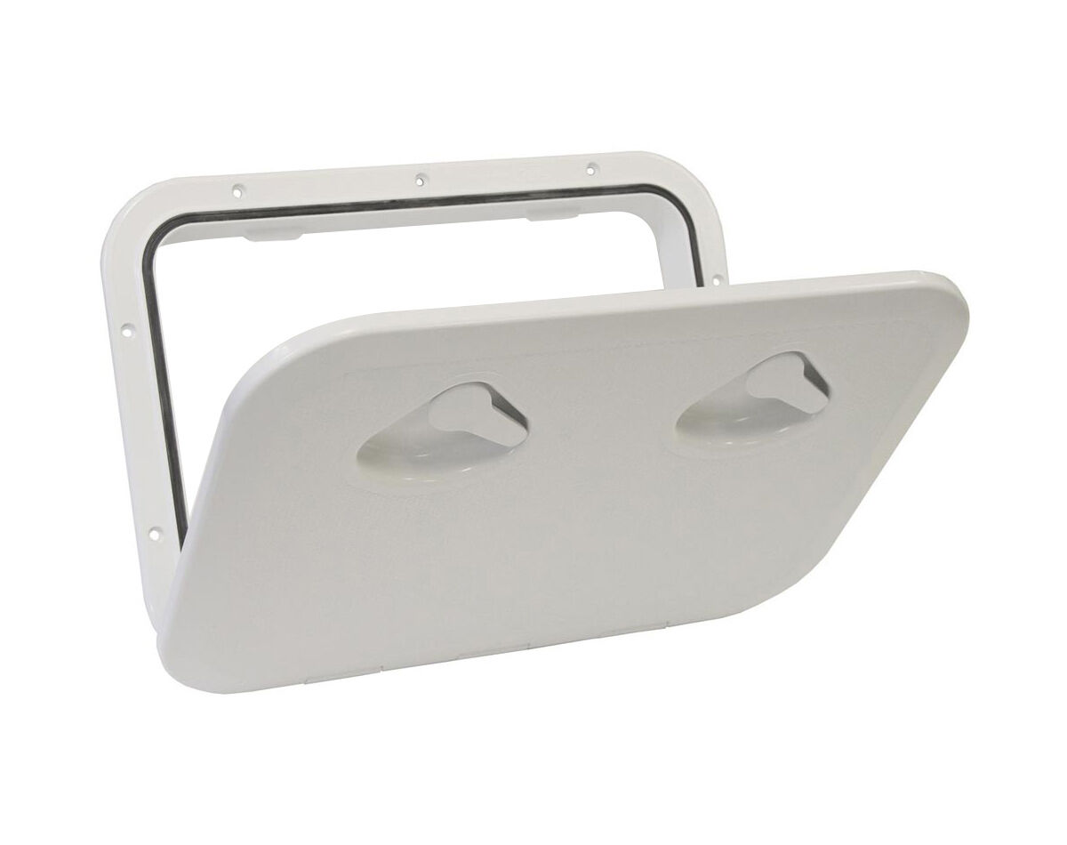 Write A ReviewDeluxe Access Hatch featuring a 180 degree door opening, strong recessed handle latches and neoprene lid seal. The low profile reinforced lid completely covers the mounting screw holes for an attractive, flush, non-skid finish.