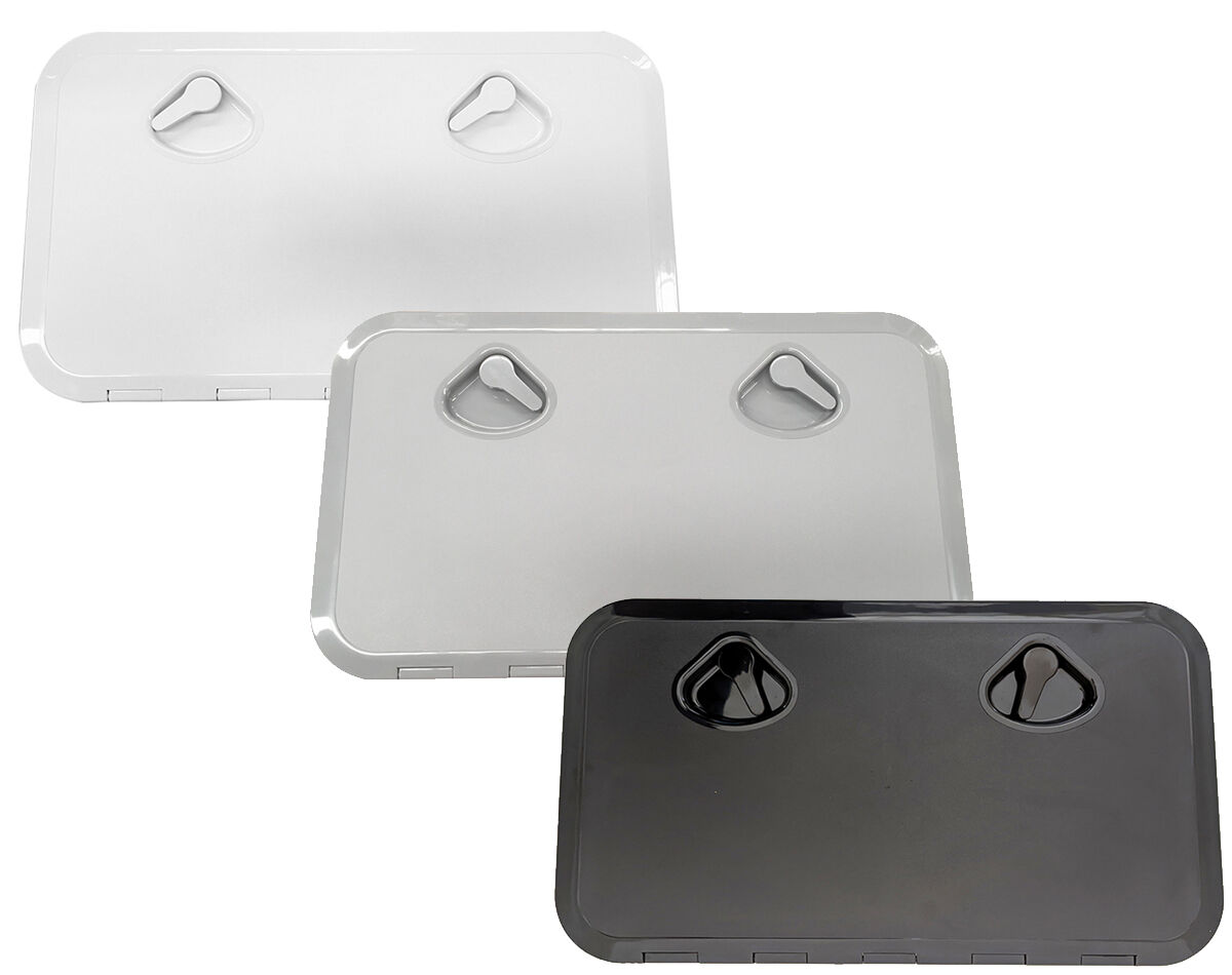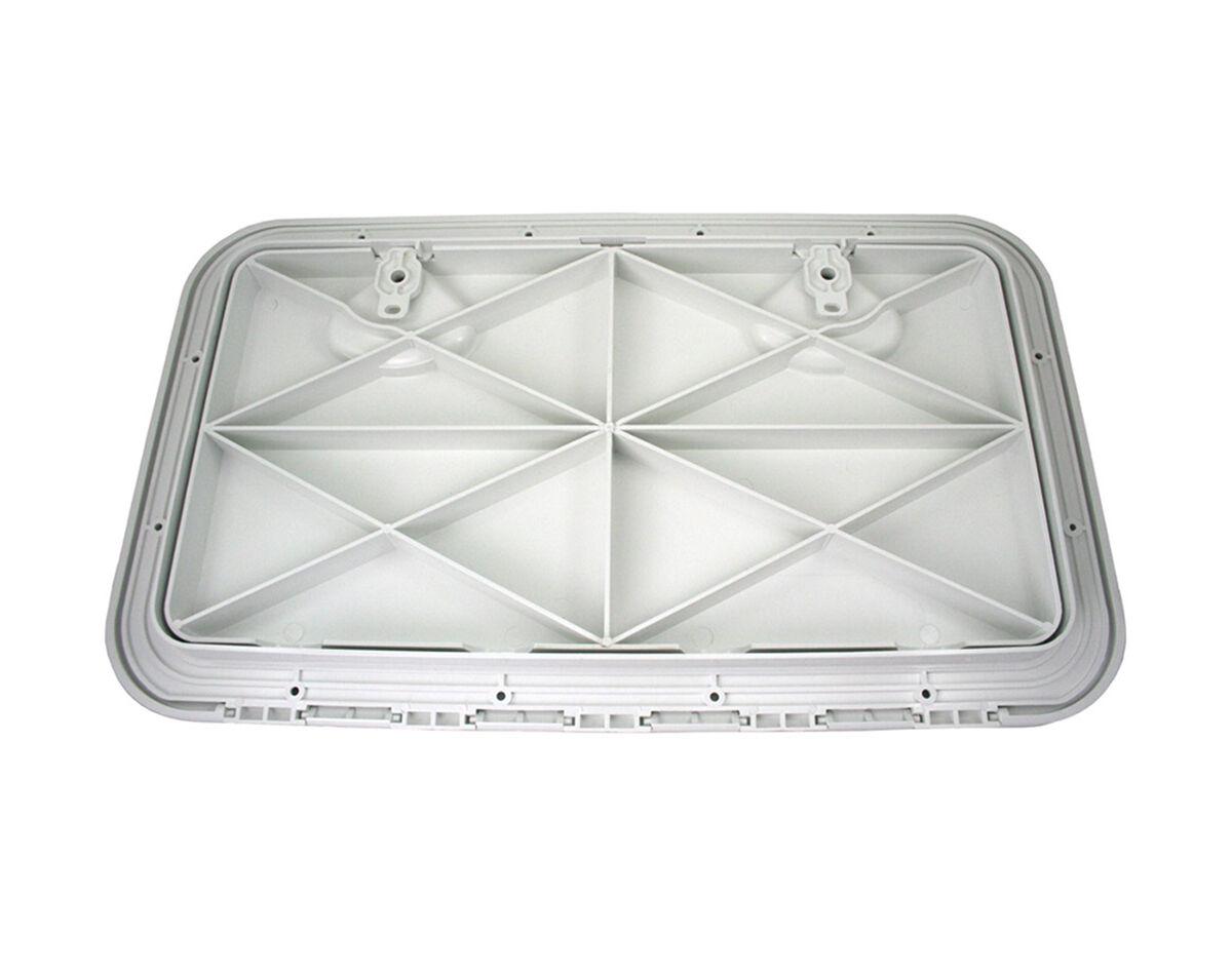 Write A ReviewDeluxe Access Hatch featuring a 180 degree door opening, strong recessed handle latches and neoprene lid seal. The low profile reinforced lid completely covers the mounting screw holes for an attractive, flush, non-skid finish.