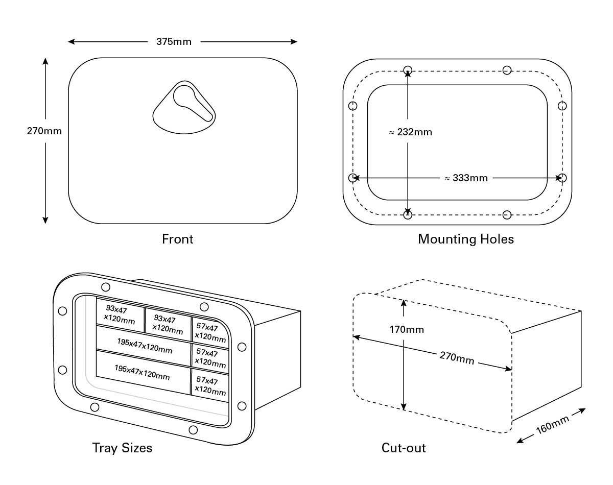 Cut out size : 270 x 170 x 160mm