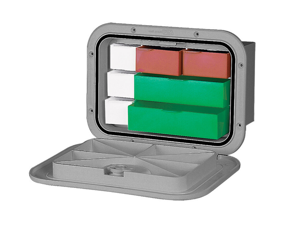 Write A ReviewDeluxe Storage Hatch with Box fitted featuring a 180 degree door opening, a strong recessed handle latch, neoprene lid seal and slide out tackle trays. The low profile reinforced lid completely covers the mounting screw holes for an attractive, flush, non-skid finish.
