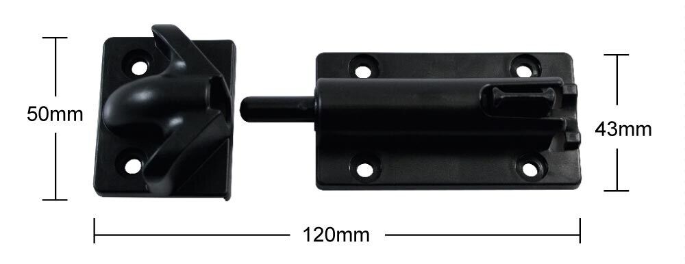 Black nylon barrel bolt - Spring loaded