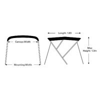 Oceansouth Bimini 3 Bow Aluminium Frame Blue or Grey Top Length 1.83m