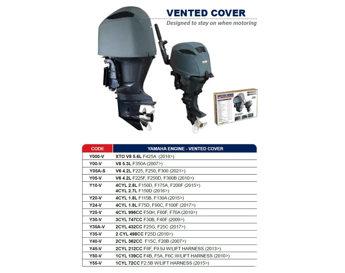 Write A ReviewOceansouth Outboard Motor Vented Covers are designed to give a secure, close fit for a range of Yamaha model outboards.