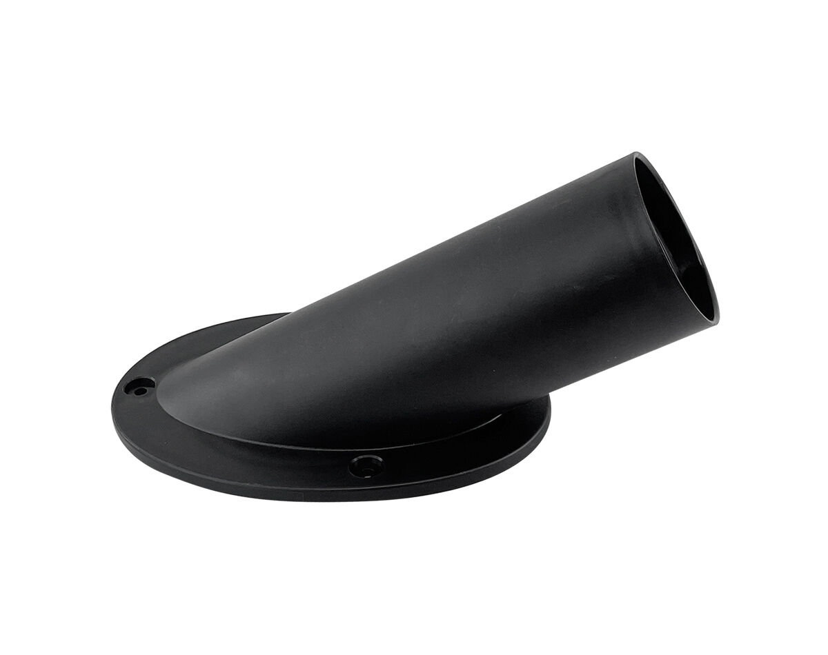 Black plastic angled rigging flange fits 2” (50mm) rigging hose.