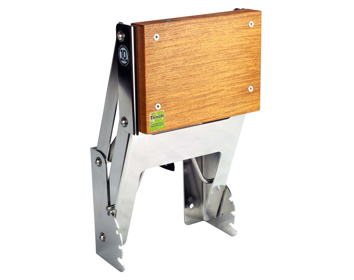 TENOB adjustable vertcal mount stainless steel outboard motor brackets are manufactured to the highest standards using extra thick gauge marine grade 316 stainless steel, top quality varnished mahogany boards and 316 stainless fastenings.