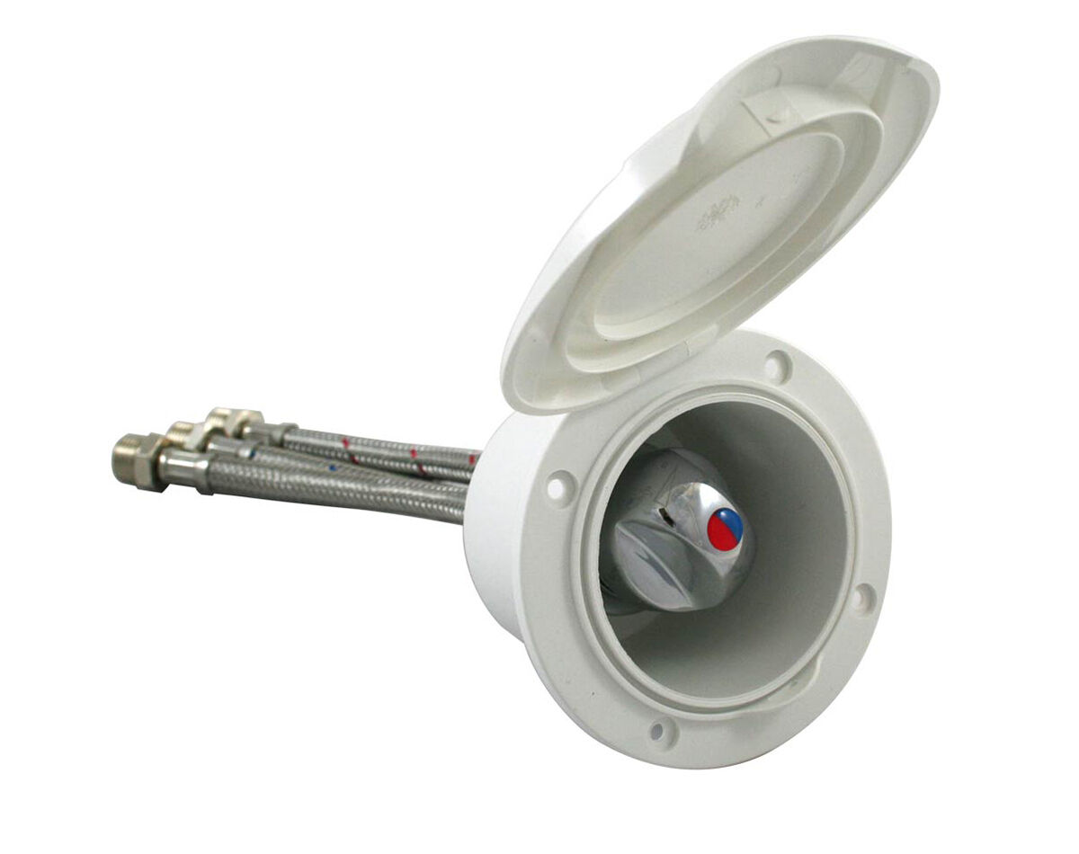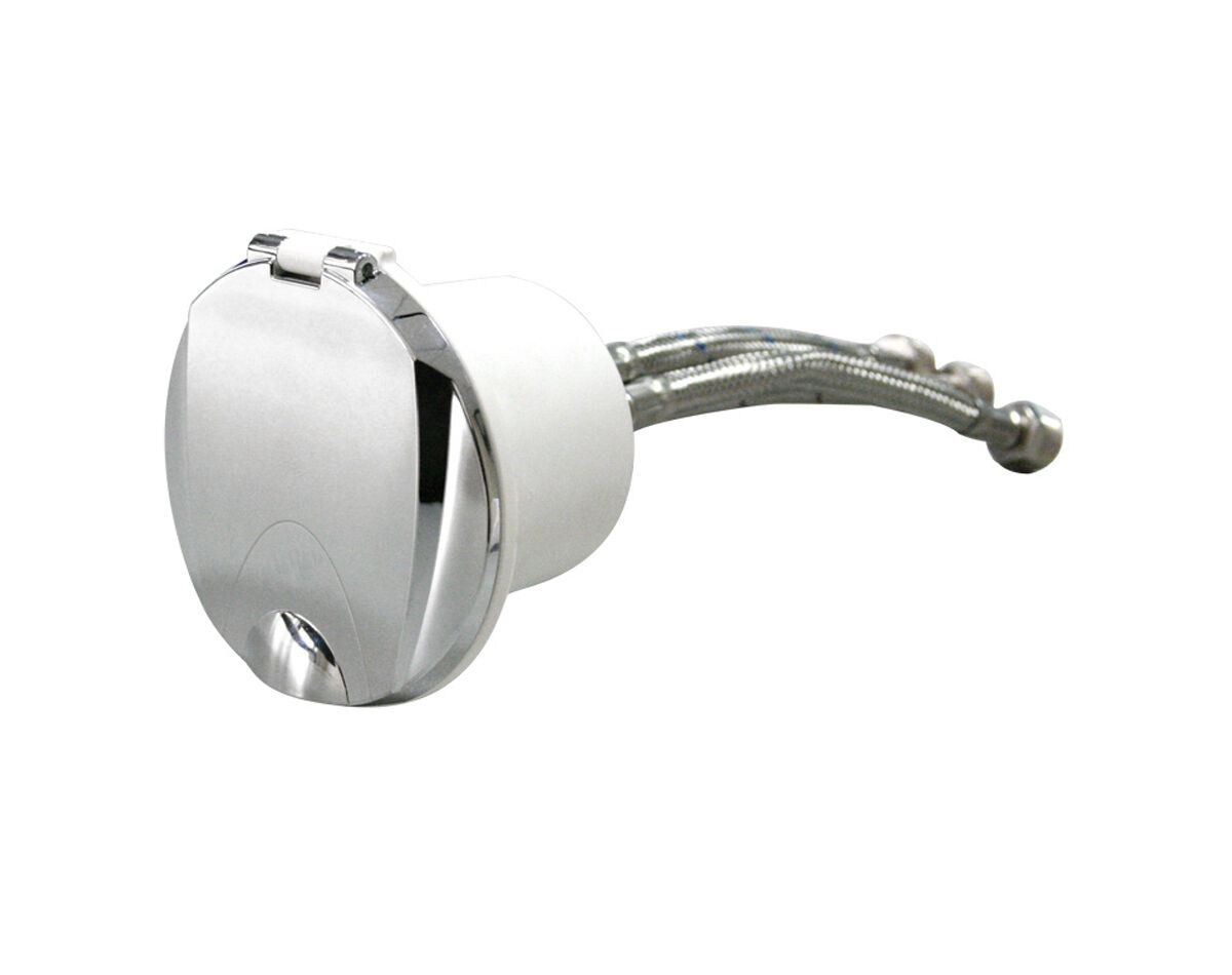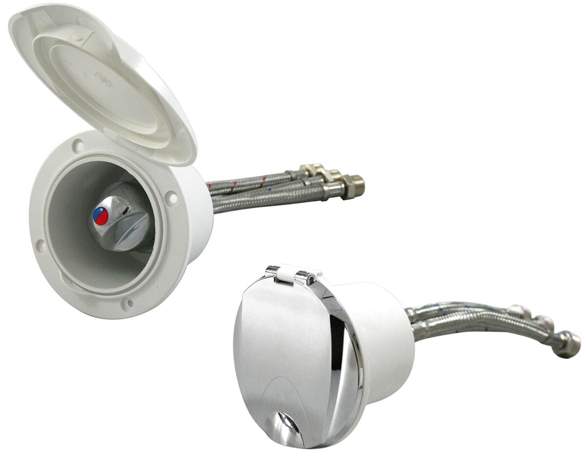 Available with a chrome lid or white lid with tap symbol, the housing fits snugly in any deck or transom to give a neat, clean look.