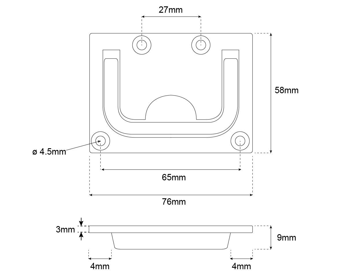 Ring Pull Flush Rectangle Stainless Steel -76x58mm