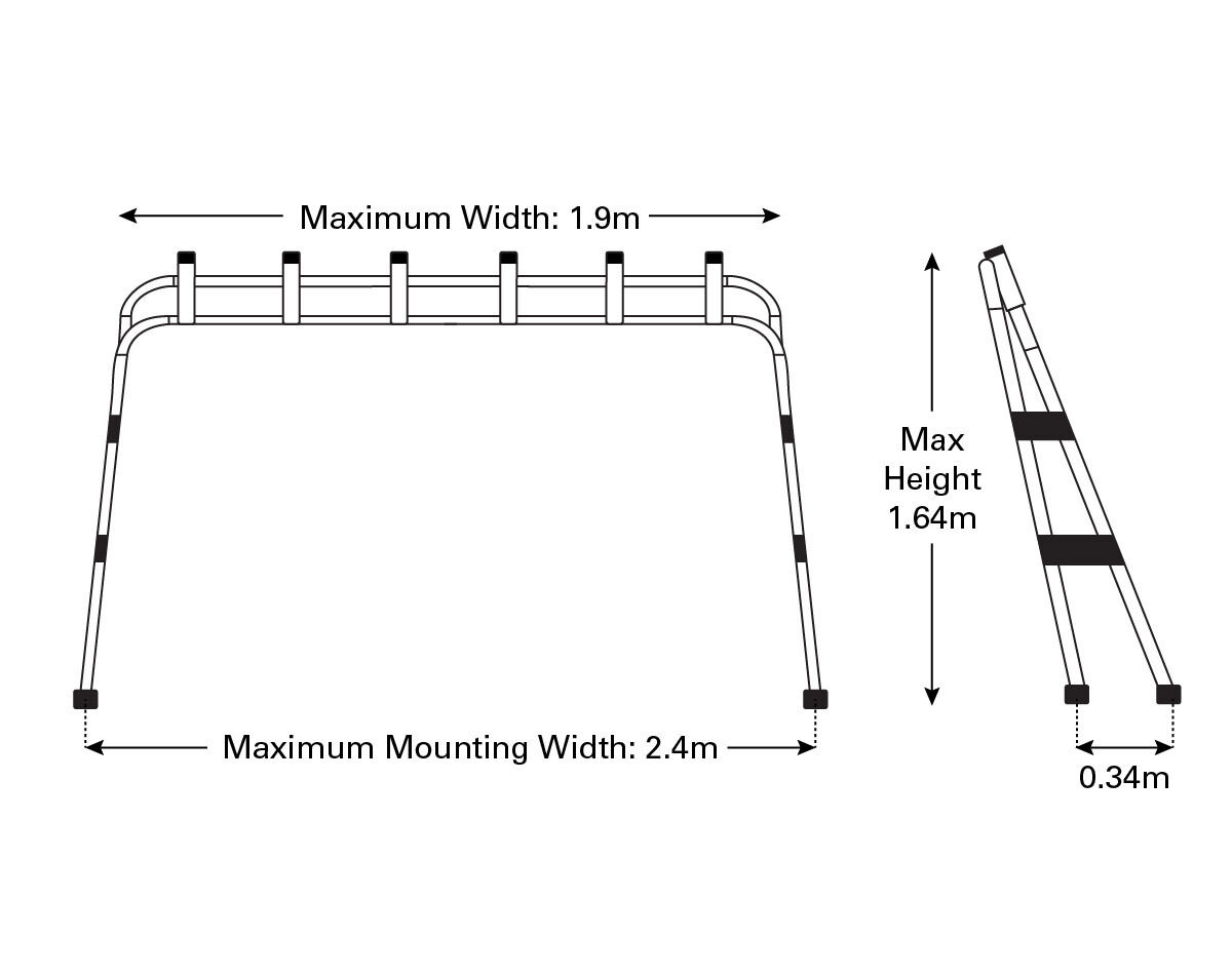 It is easily assembled and features unique universal mounts. The base mounts features a bevelled base which enables a variety of possible mounting positions. The rear base mounts are fitted with thumb screws that enable the fishing rod rack to be folded down.