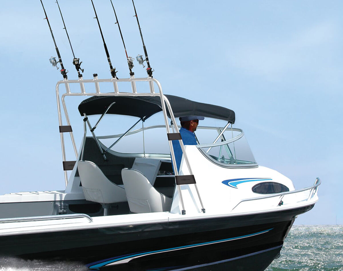 The six high impact polymer rod holders with metallic finish are securely attached to the frame and feature plastic tops to protect your rods against movement.