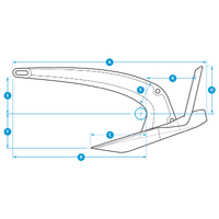| Sugg. Boat Size (m) | Anchor Size | Dimensions (mm) - see diagram within images | |||||||||