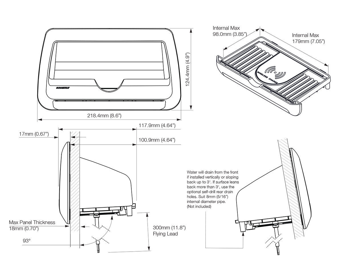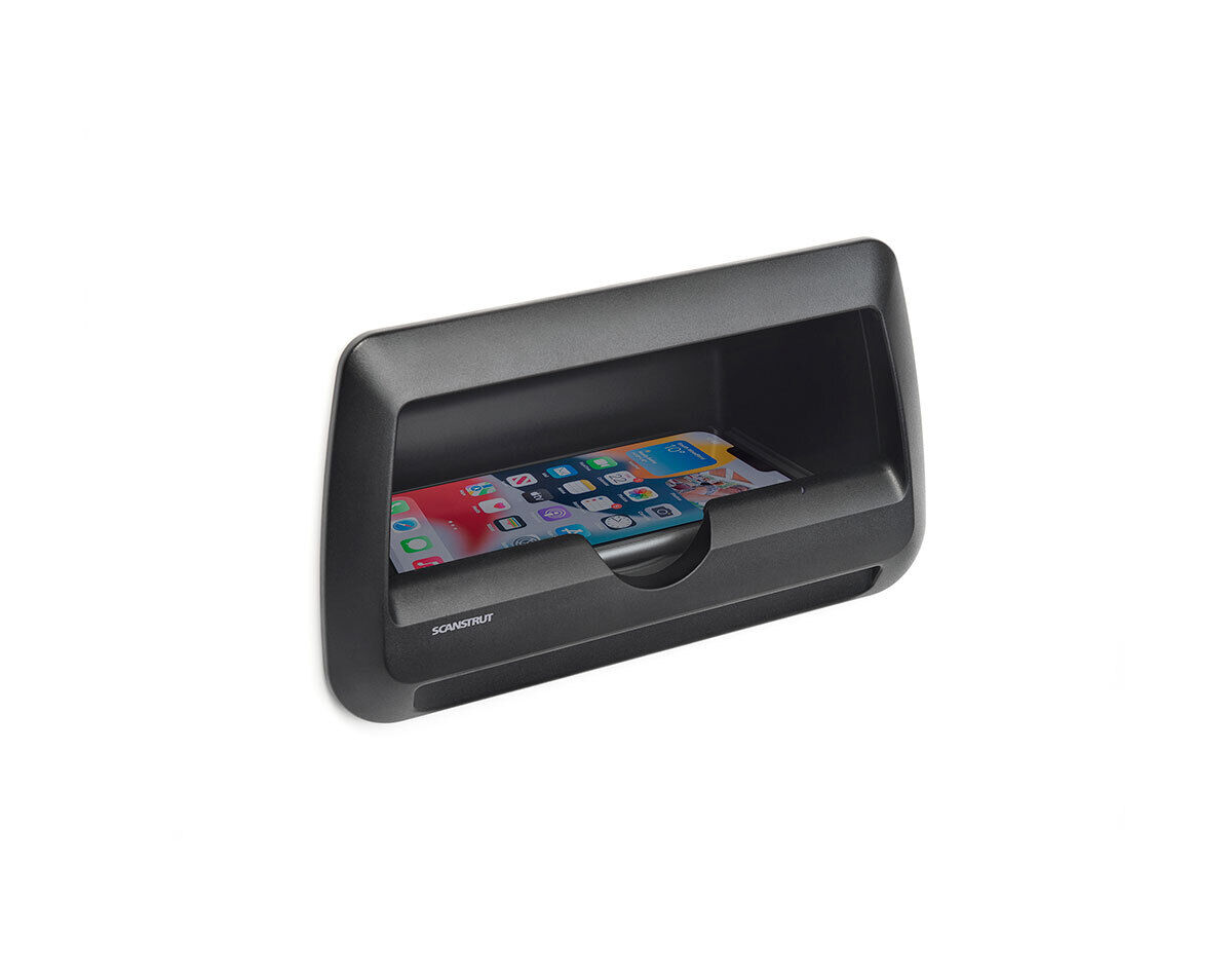 The clever design reduces the installation depth by storing and wirelessly charging the phone sideways. Perfect for integration into consoles, bulkheads, seating, cabinetry and more. Simply slide your phone into the pocket and instantly start wirelessly charging.