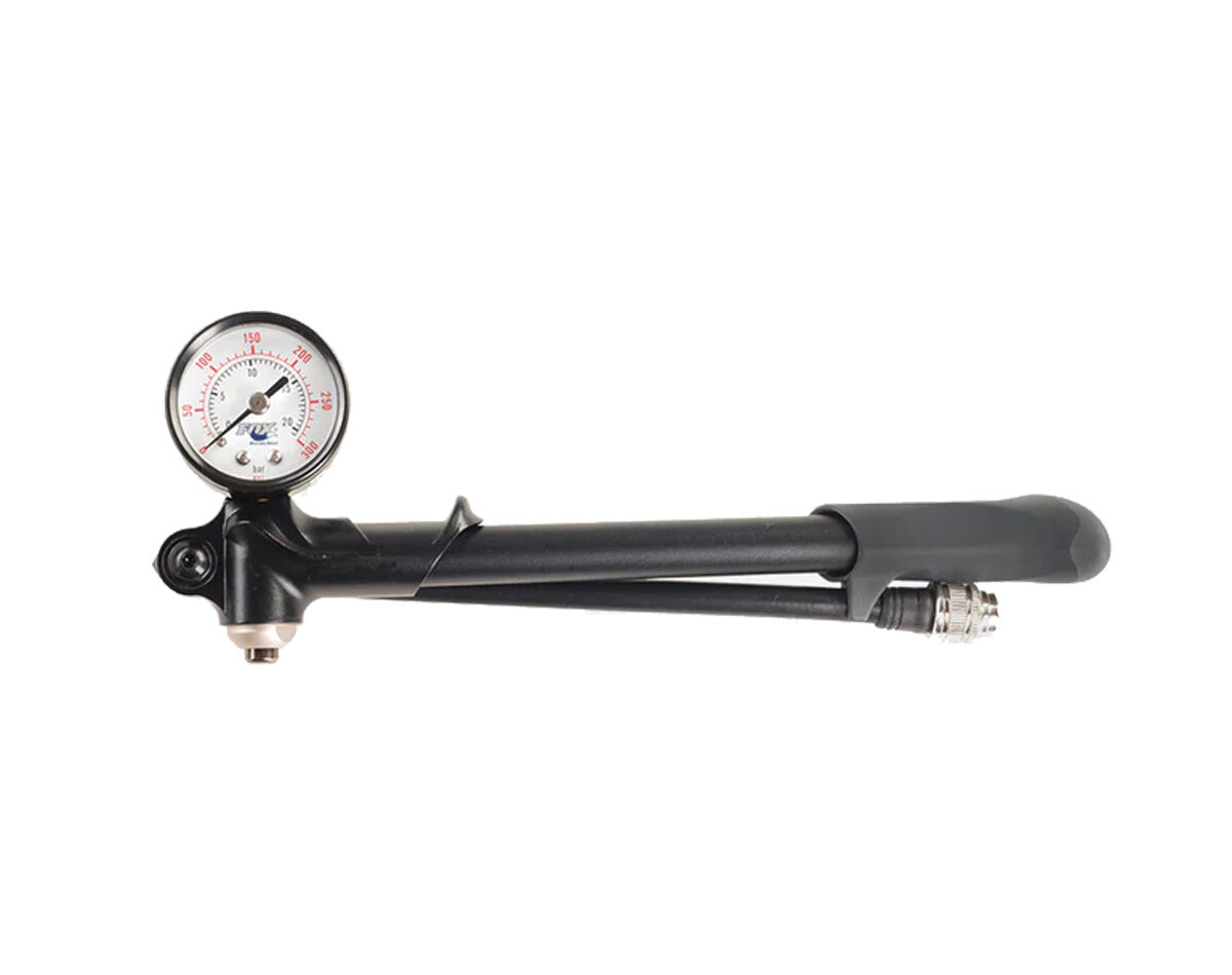 Write A ReviewThe high-pressure shock pump features an integrated pressure gauge and bleed valve for simple adjustment with a maximum inflation pressure of 350 psi.