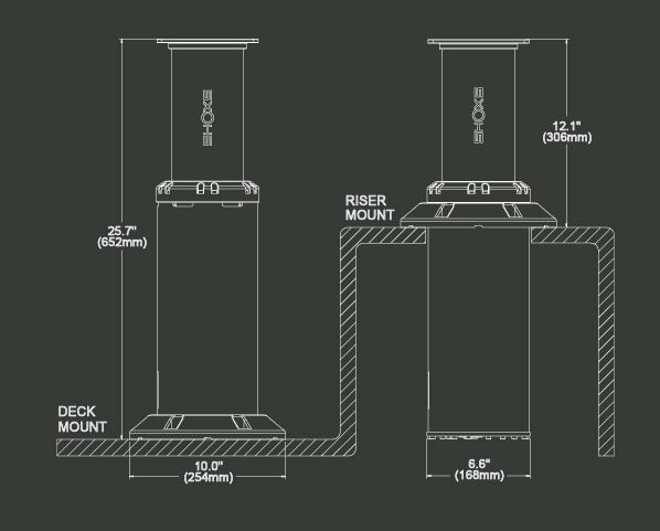 The X Pedestal is equipped with an adjustable mounting flange for installing in nearly any helm layout. It can be mounted directly onto the deck, in confined spaces or on deck-mounted boxes.