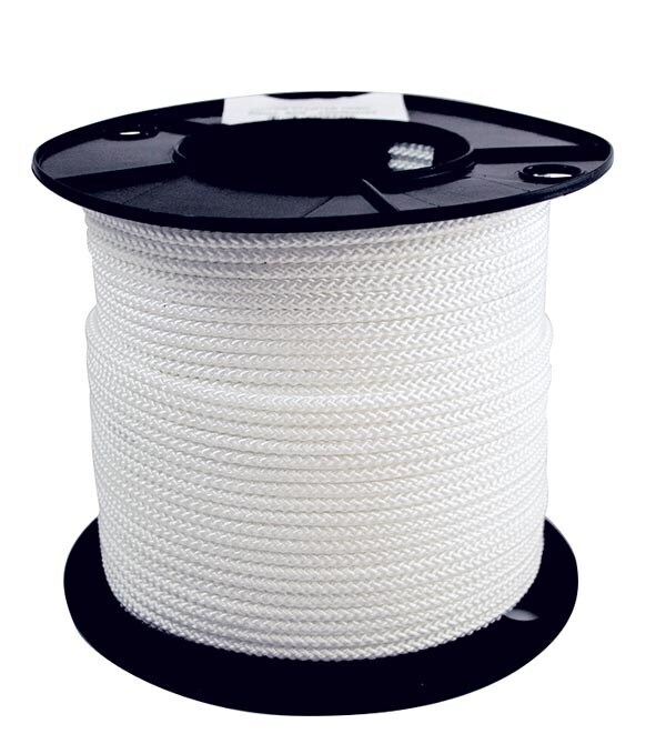 White plaited nylon cord for outboard motors.