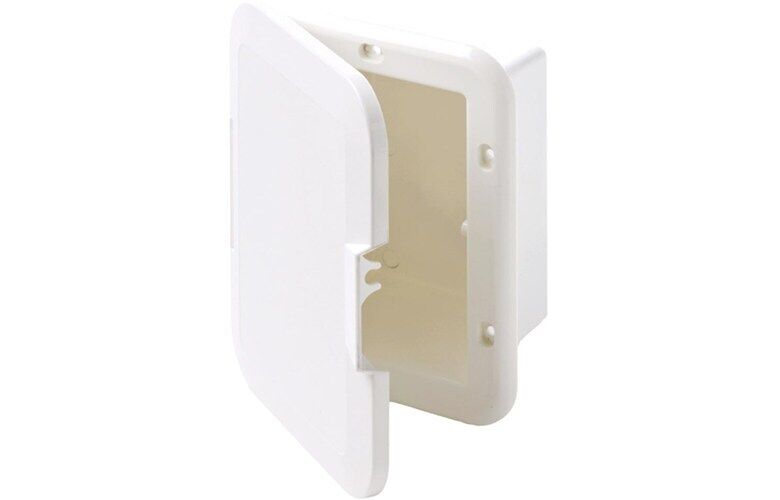 Write A ReviewRectangular white ABS plastic recessed box with door that's suitable for use as recessed storage pockets in dry or covered areas.