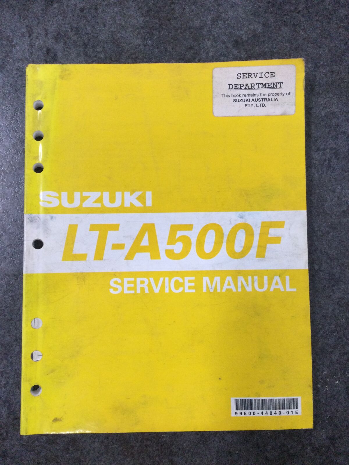 Genuine Suzuki service manual for the 2002 LT-A500F ATV. Provides detailed instructions, specifications, and diagrams for maintenance, troubleshooting, and repair. An essential reference for owners, mechanics, and enthusiasts to keep the ATV performing at its best.