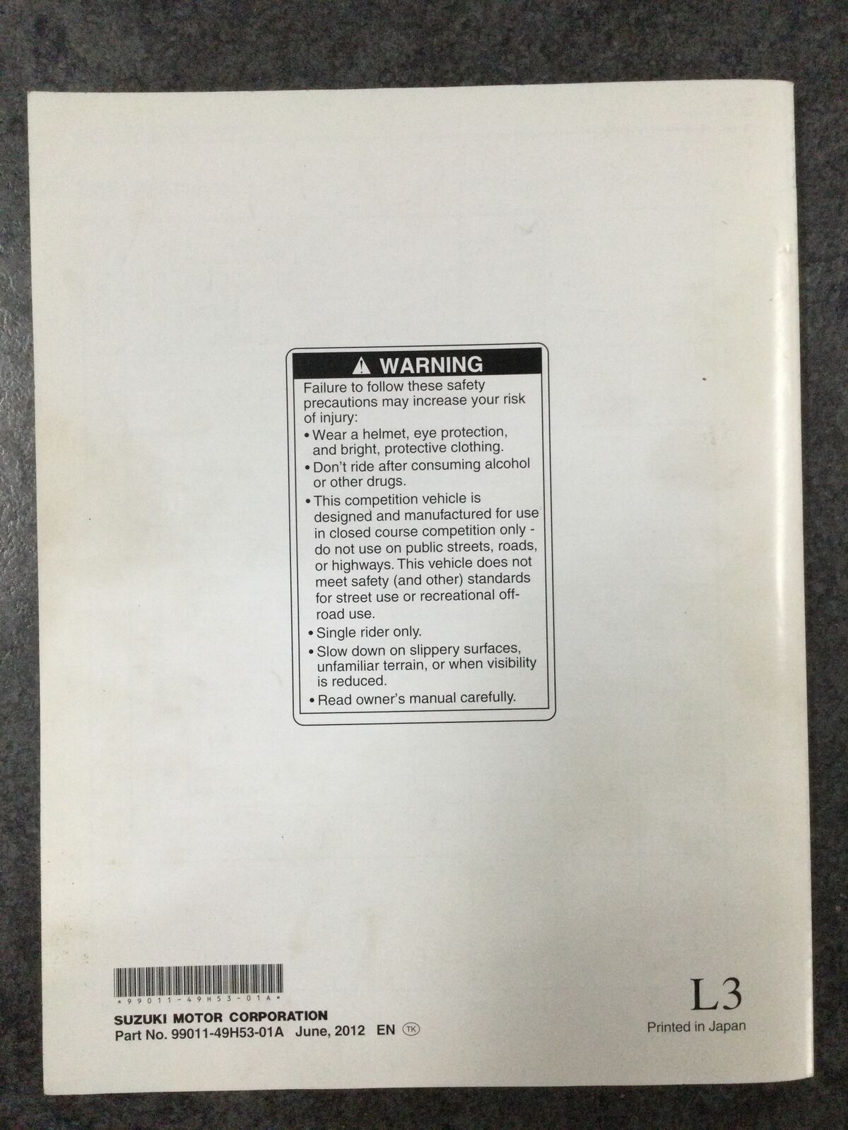 Write A ReviewSuzuki RM-Z250 Owners Manual and Race Preparation Manual 2013 #99011-49H53-01A