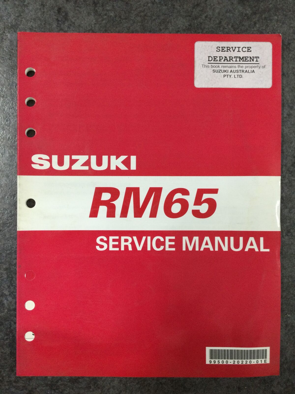 Genuine Suzuki service manual for the 2003 RM65. Contains comprehensive maintenance procedures, specifications, and detailed diagrams for servicing, troubleshooting, and repairing the motorcycle. An essential resource for owners, mechanics, and enthusiasts maintaining this model.
