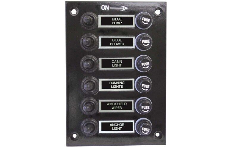 Write A ReviewBlack bakelite switch panels as detailed above complete with switches that have weatherproof black neoprene boots. An improvement over standard switch panels - for little additional cost. These panels are fully wired for use, include screw-in fuse holders with 5 amp fuses and asstd stick-on name labels. Suits 12 and 24 volt.