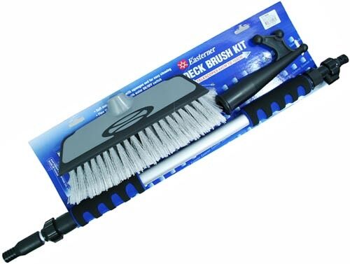 This versatile deck cleaning product has two attachments. Screw on boat hook head, screw on brush head with squeegee end and telescopic 64cm to 103cm
