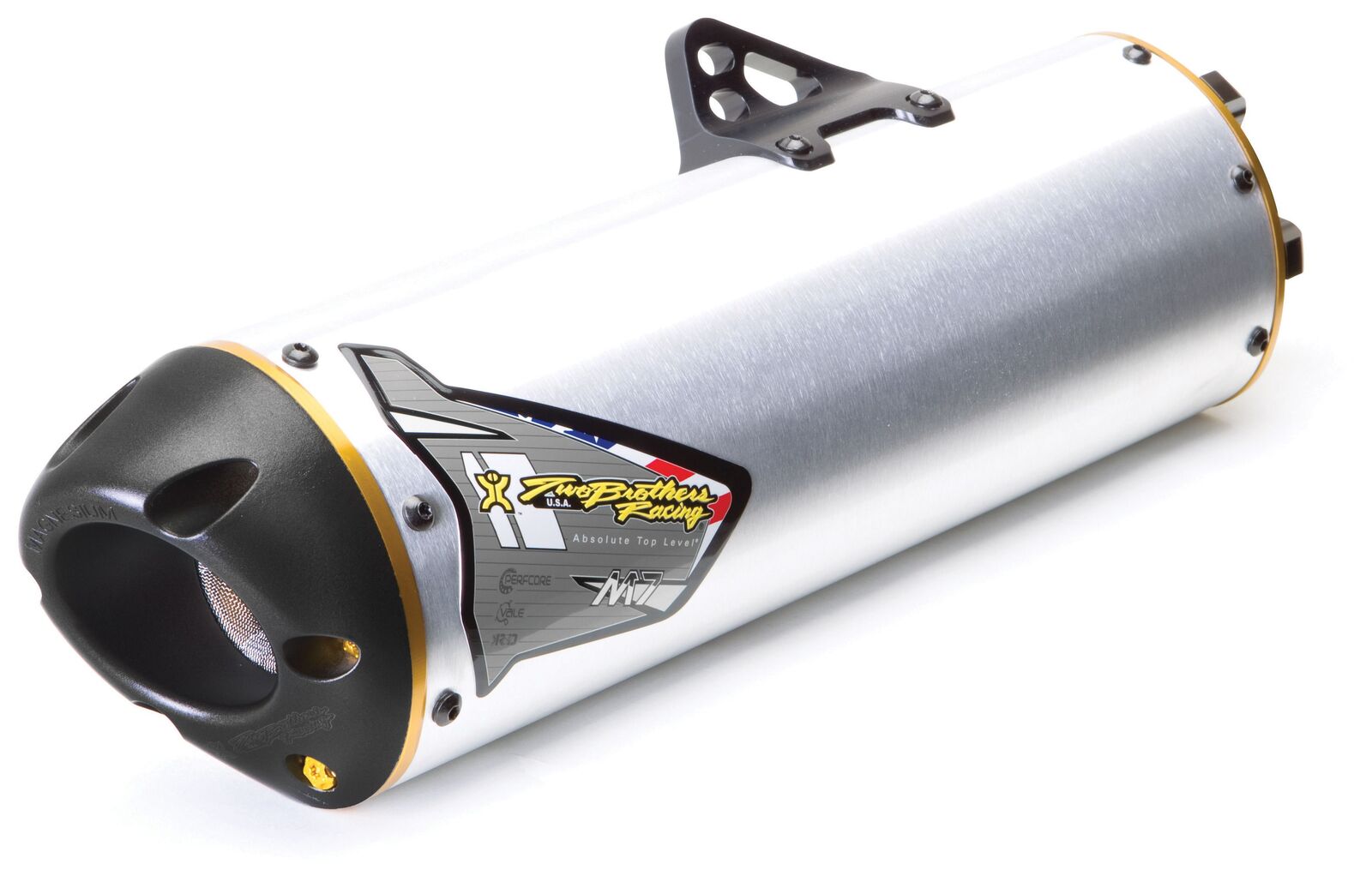 All Two Brothers M-7 Exhausts feature TBR’s innovative V.A.L.E. system. The V.A.L.E. system is TBR's revolutionary, patented method of attaching the muffler canisters to the mid-pipe without the use of springs or welding. Each muffler is mounted to the bike via a solid aluminum integrated exhaust hanger. All of this combined copes extremely well with the rigors of off-road riding while and reduces the possibility of exhaust failures.
