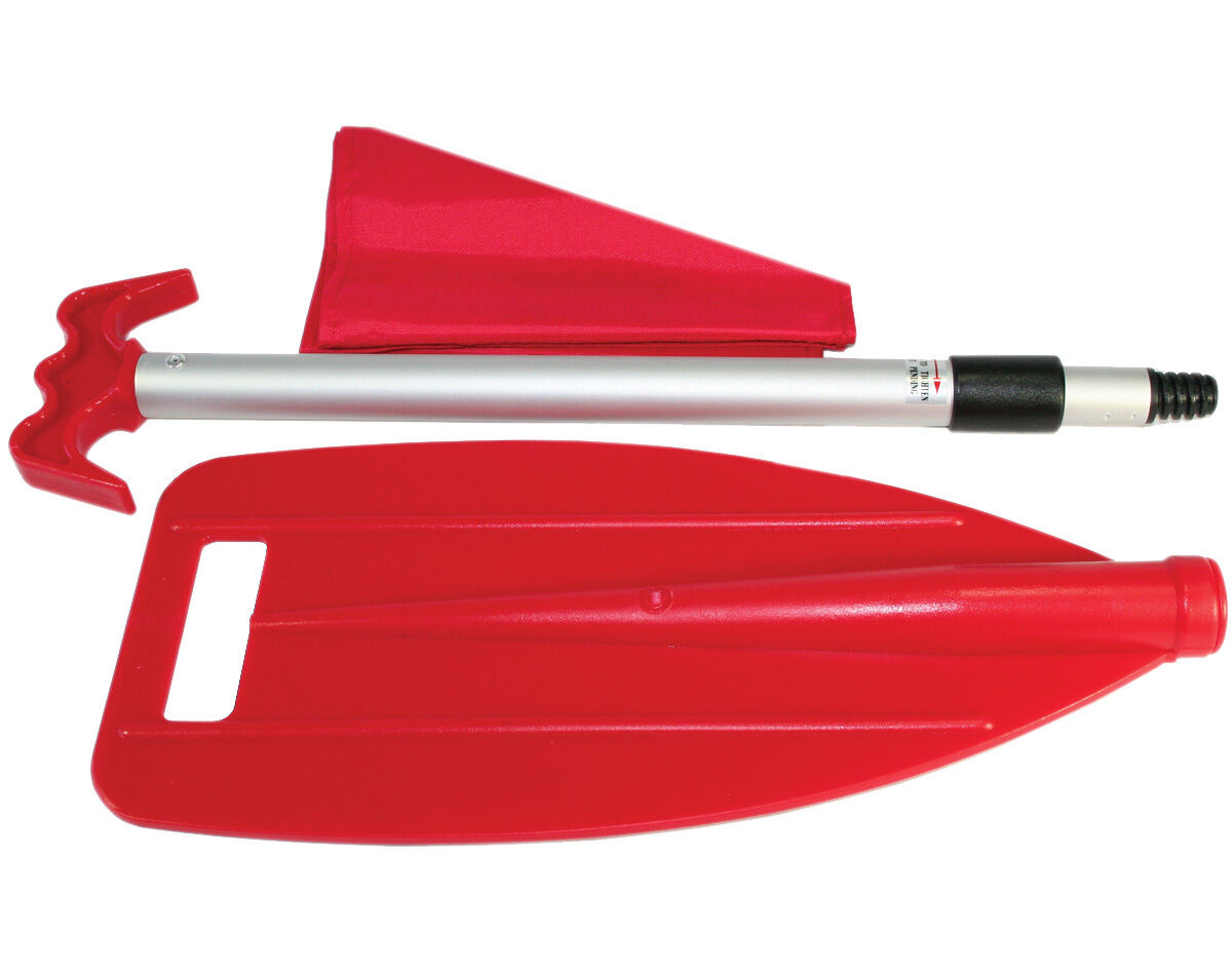 Telescopic 2 piece paddle & boat hook supplied with a red nylon bag, ideal where space is limited. Anodised aluminium shaft with red hook/hand grip & detachable blade. Extends from 450mm to 1.07m.