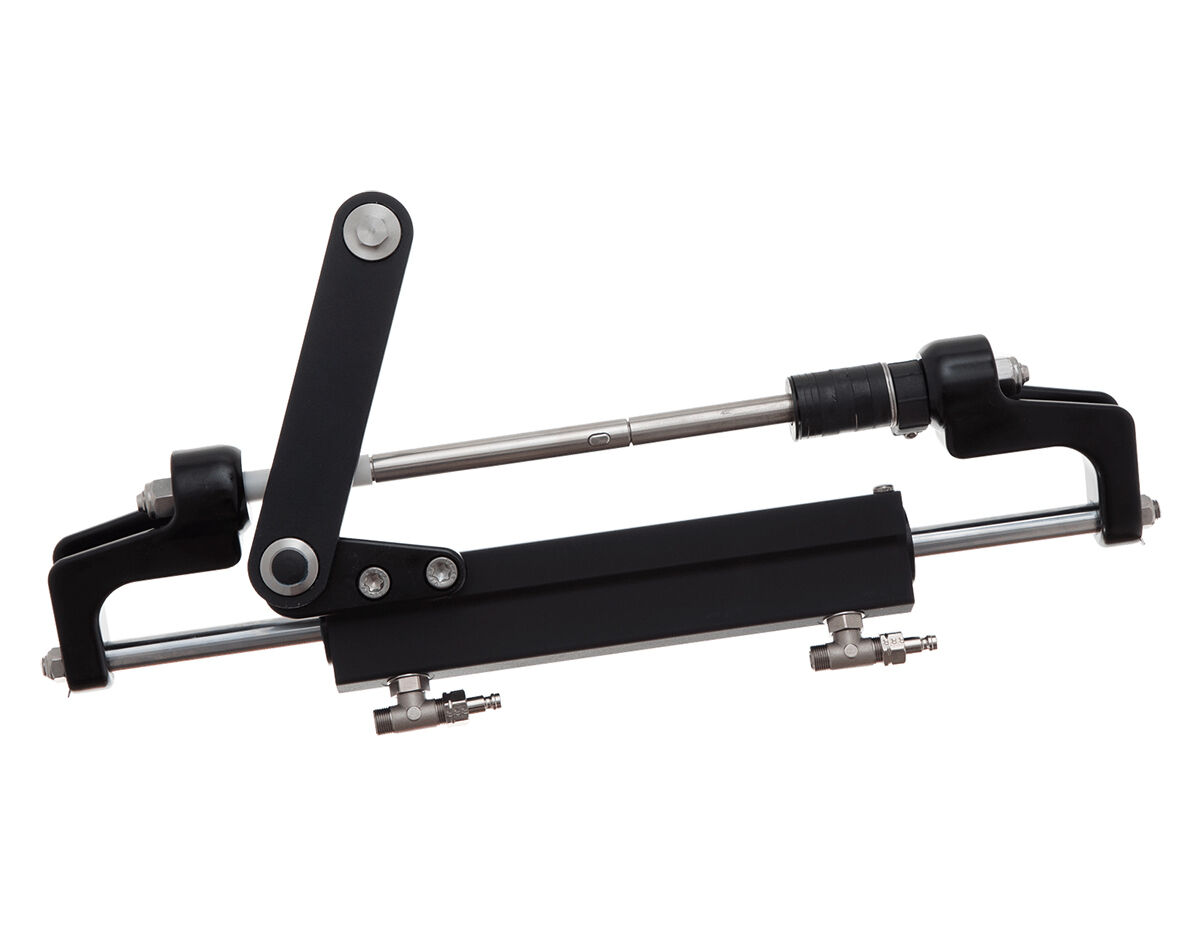 The kit comes packaged with helm pump, outboard front mount cylinder, fittings and two litres of hydraulic oil, just add the required length hose kit to complete the steering system.