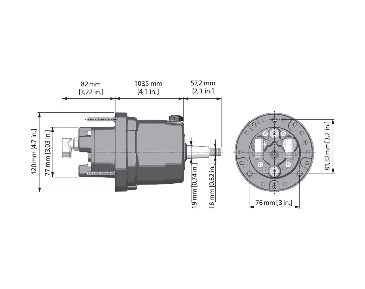 Note: The 2 UC95-OBF/2 cylinder allows for a wider tilting angle