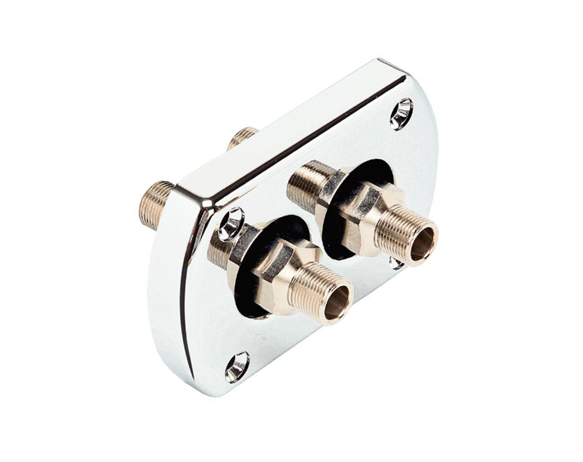 Write A ReviewBulkhead kit for dual thru-hull hose applications with pre-assembled fittings and connection flange.